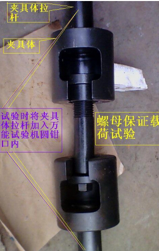 夾具是我公司根據(jù)國家相關(guān)標(biāo)準(zhǔn)GB/T3098.1-2010,選用特殊材料精心設(shè)計加工制作而成,它通過不同方式的組合,可以進(jìn)行螺栓楔負(fù)載試驗(yàn)和普通拉力試驗(yàn)、螺栓保證最小拉力荷載試驗(yàn)、螺母保證荷載試驗(yàn)。該夾具通過連接拉桿夾持到萬能試驗(yàn)機(jī)的鉗口內(nèi),即可以進(jìn)行各種拉力試驗(yàn),普通液壓萬能試驗(yàn)機(jī)不需添加或更改其它裝置。